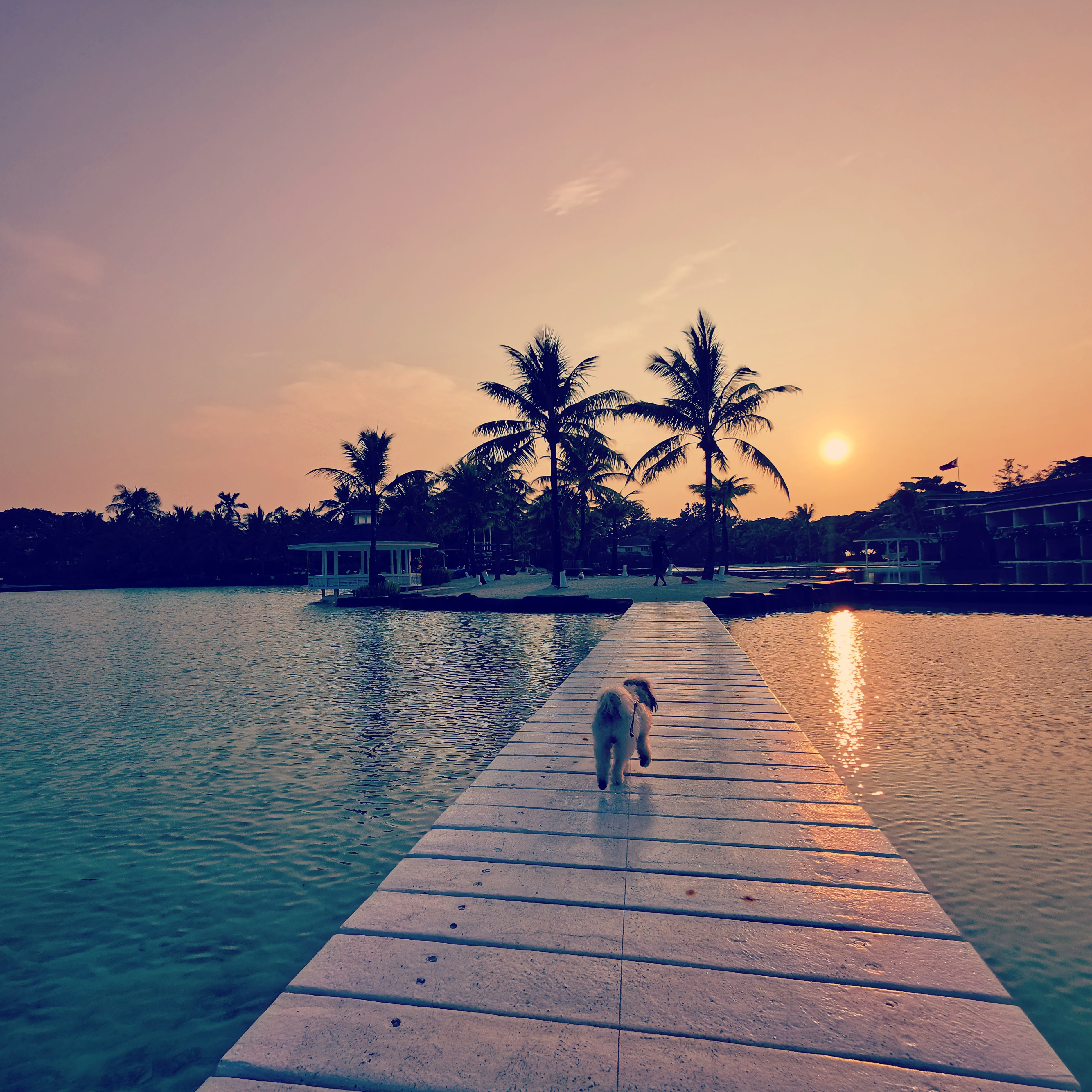 Even sunsets in Plantation Bay are quite captivating, though usually, I am unable to capture them with Hobbes as my model because he usually has his walks early in the evening.
